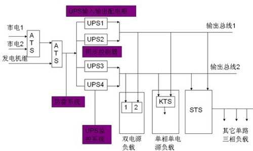 鑒于現(xiàn)在通信網(wǎng)絡機房內(nèi)的絕大多數(shù)IT設備,比如服務器、路由器、交換機、光端機、網(wǎng)關、磁盤陣列機和通信設備等,所允許的瞬間供電中斷時間僅為0.01-0.02秒左右。這就意味著: 對于關鍵性的通信負載系統(tǒng)而言,在運行中如果出現(xiàn)0.02秒以上“瞬間供電中斷”的故障時,就會造成“網(wǎng)絡癱瘓”事故發(fā)生。一旦網(wǎng)絡癱瘓后, 要想讓整個網(wǎng)絡重新恢復正常工作往往需耗時幾十分鐘--幾小時。顯而易見,由此會給用戶帶來巨大的經(jīng)濟損失。基于上述原因,我們必須考慮消除可能出現(xiàn)在UPS輸出供電系統(tǒng)中的”單點瓶頸”故障隱患,確保對這些關鍵性IT負載設備供電的連續(xù)性。