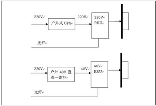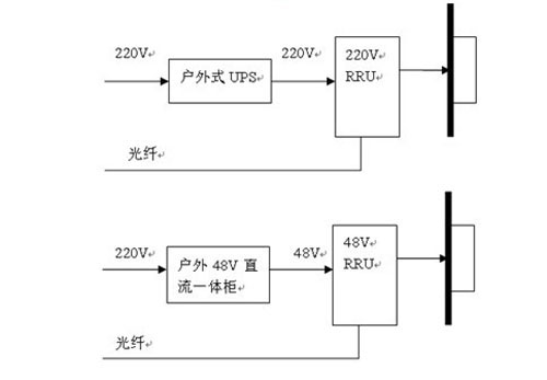 RRU距離機房超過1500米,BBU就近獨立接市電,RRU采用獨立供電模式:采用室外型一體化UPS供電、直流UPS供電(交直流復合供電模式)、戶外型48V直流供電。
