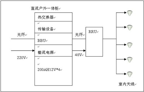 直流拉遠:RRU距離機房在100米以內(nèi),采用室外型一體化通信電源系統(tǒng)