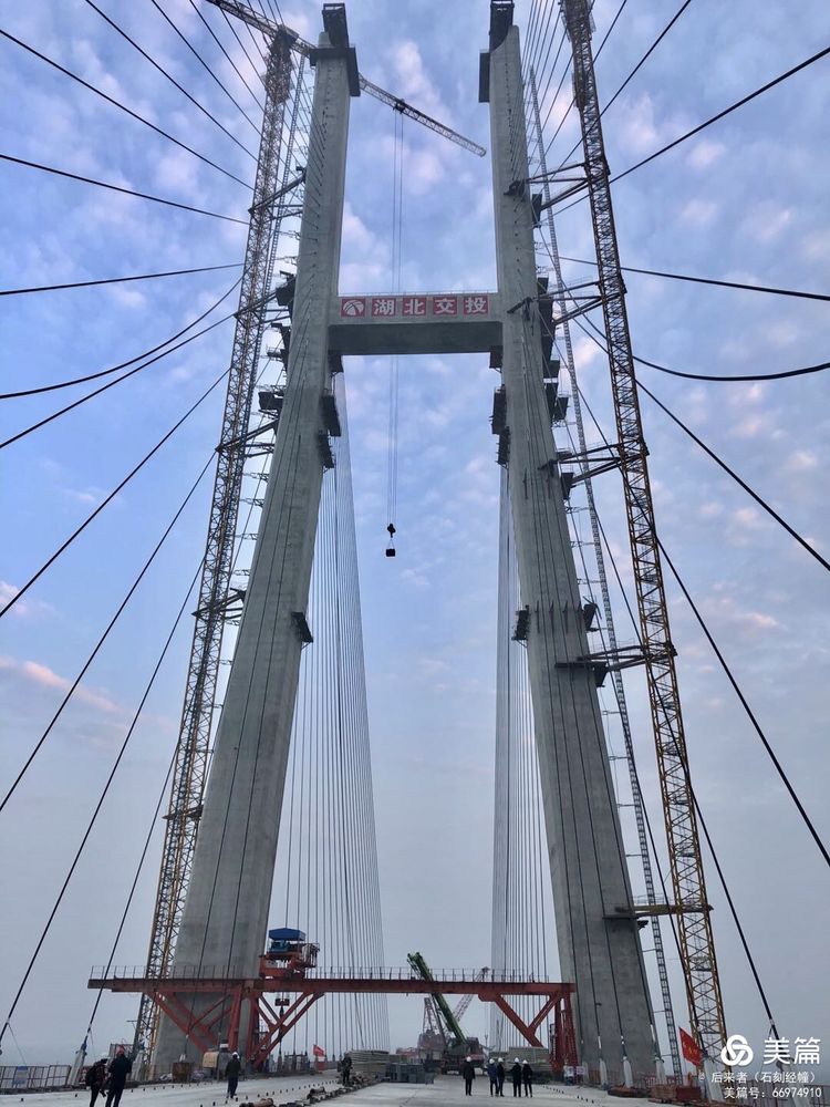 湖北省赤壁長江公路大橋機電工程施工項目起于洪湖市烏林鎮(zhèn),止于赤壁市赤壁鎮(zhèn),全長11.2公里,其中長江大橋全長3.35公里,全線采用雙向六車道高速公路標準建設(shè),設(shè)計速度每小時100公里,批復(fù)概算32.5億元,批復(fù)工期48個月。大橋建成后,從赤壁過江到洪湖僅需5分鐘。項目創(chuàng)新設(shè)計方式,大橋主塔采用H形設(shè)計,北主塔高217.33米,南主塔高223米;主跨720米打破了鋼混結(jié)合及鋼混疊合梁斜拉橋主橋最大跨徑600米的世界紀錄,成為新的世界第一。2021年6月3日已經(jīng)通過交工驗收,通橋指日可待。