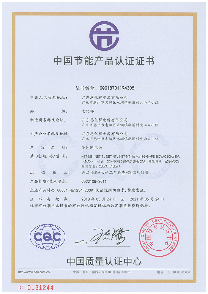中國節(jié)能產(chǎn)品認(rèn)證證書