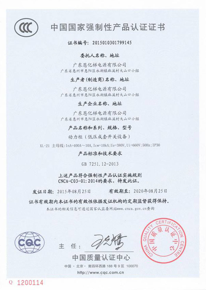 中國國家強制性產品認證(動力柜)