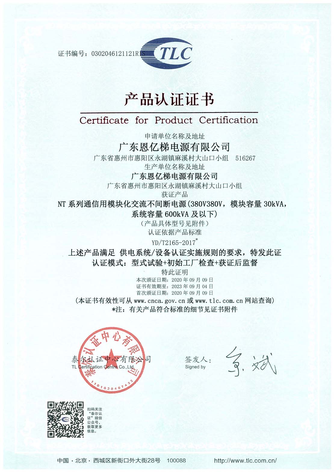 泰爾認(rèn)證(模塊化不間斷電源)
